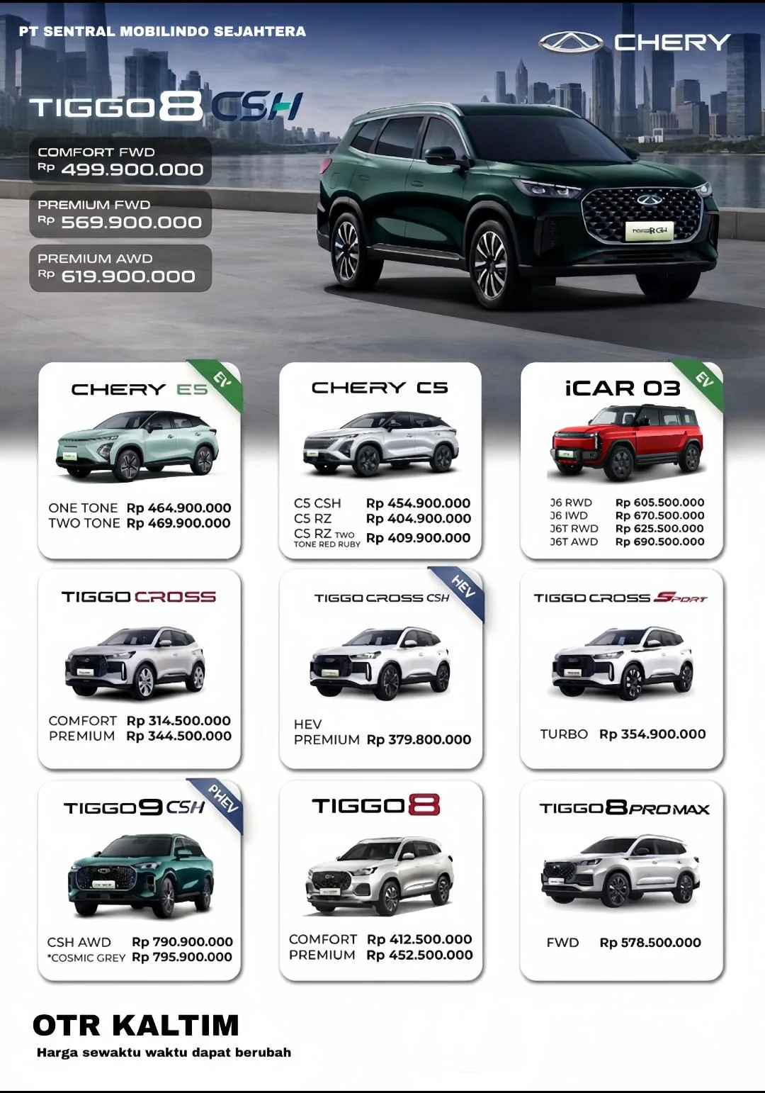 Pricelist Chery Kalimantan Timur – Berlaku April 2026